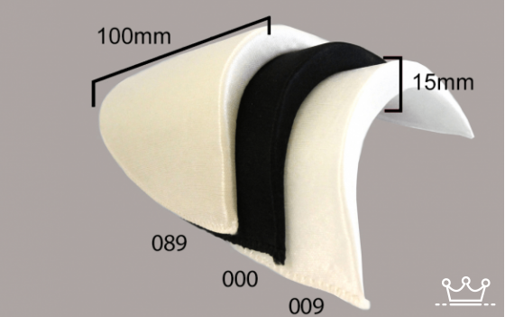 Deze schoudervulling heeft een rechte rand en is door het satijnen vliesje ook geschikt voor kledingstukken zonder voering. Naai de schoudervulling vast met een paar steekjes in de schoudernaad. De vulling is op het dikste punt 15mm hoog en 100mm lang.