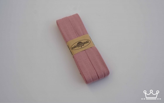 Tricot biaisband van het merk Oaki Doki, is samengesteld uit Viscose en Elastan. Het heeft een fijn geweven structuur en voelt heel zacht aan. Het is decoratief toe te passen op veel rekbare stoffen, vooral voor mouw- en halsopeningen.