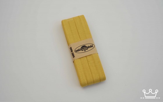Tricot biaisband van het merk Oaki Doki, is samengesteld uit Viscose en Elastan. Het heeft een fijn geweven structuur en voelt heel zacht aan. Het is decoratief toe te passen op veel rekbare stoffen, vooral voor mouw- en halsopeningen.