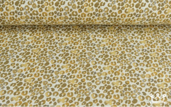 Alpenfleece happy panther melange beige/geel is een mooie stevige kwaliteit alpenfleece jogging gemaakt van 56% Polyester en 40% katoen en 4% Elasthaan. De binnenkant is gemaakt van extra zachte geborstelde alpenfleece. Dit zorgt ervoor dat de stof nog zachter en comfortabeler is dan een gewone jogging.