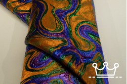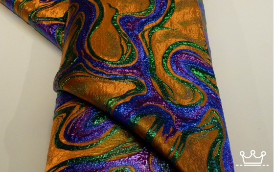 Carnavals Jacquard verlus oranje, groen, kobalt, paars is gemaakt van 100% polyester.