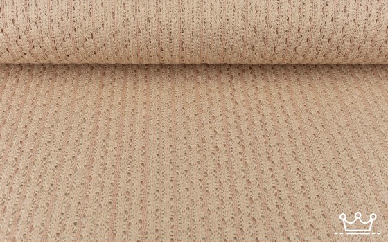 Gebreide stof ajour licht zalm roze is een mooie gebreide stof gemaakt van 65% polyester 35% katoen.