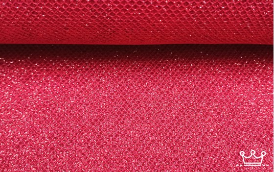 Glitter met net is gemaakt van 100% polyester. Het is een wat stuggere geweven stof met glitter met daarover een soort netstof.