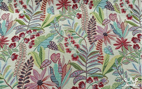 De gobelin floral elegante is gemaakt van 50% polyester met 50% katoen.