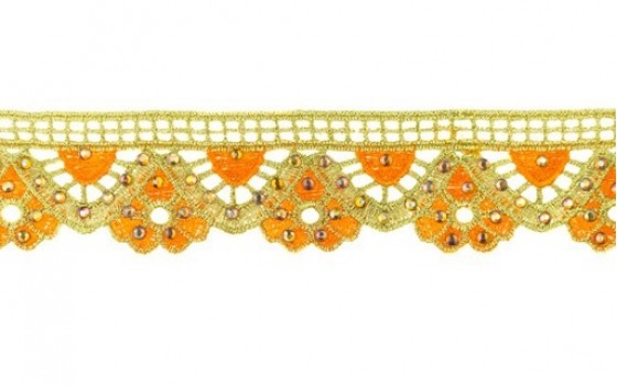 Goudband diamond oranje is gemaakt van 100% polyester.
