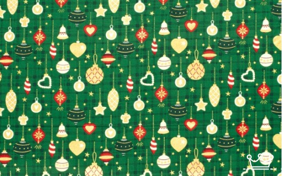 Kerst stoffen Kerst katoen groen met kersthangers