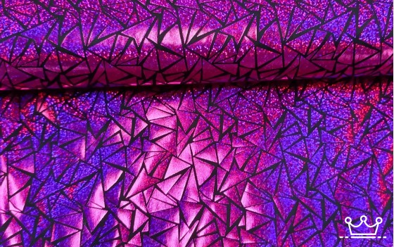 Lamee driehoeken fuchsia is een stof met een mooie glans die in de breedte licht rekbaar is. Lamee stof is gemaakt van 95% polyester en 5% elasthaan.