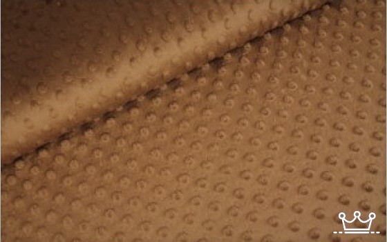 Minky stof Camel is gemaakt van 100% polyester. Het is een hele zachte comfortabele soepel vallende stof. Minky stof is zachter dan fleece met een soort van korte vacht textuur. Er zit door de haartjes een vleug op de stof. Minky fleece stof wordt ook wel fleece met nopjes genoemd.