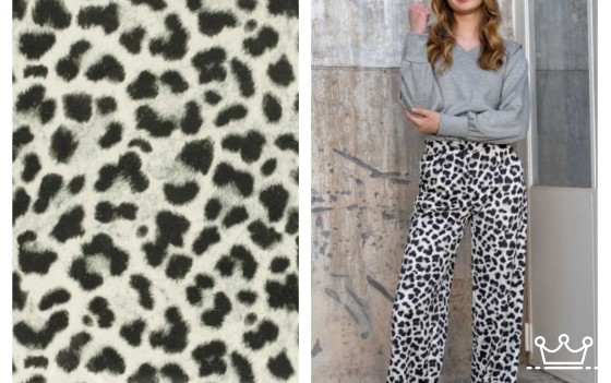 Deze stof is een mooie bedrukte soepele en rekbare imitatie suède stof voor het maken van kleding zoals jasje, jurk of rok of als decoratie.