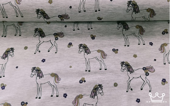 Tricot glitter paard grijs
