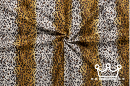 Dierenprint is een mooie kwaliteit Velboa. Het is een kortharige velours/nep bont. Het is dus een harige stof met een luxe uitstraling. Deze stof is 100% polyester en wordt machinaal gemaakt. Deze stof wordt speciaal gebruikt voor het maken van: kleding, kussens, decoratief of als bekleding voor bijvoorbeeld een hondenmand. Ook bij het theater of bij de carnaval zien we deze stof regelmatig terug.